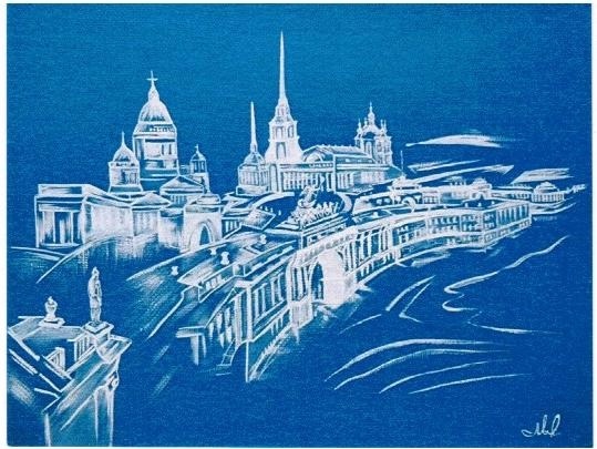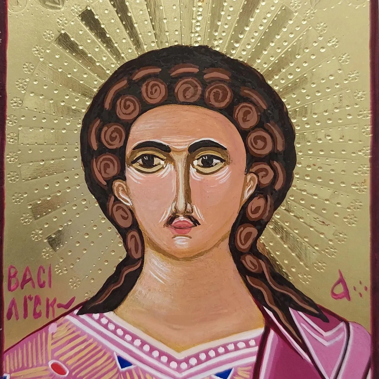 (Холст|лунное сусальное золото|пигменты: азурит, шпинель, кармин, аурипигмент, охра)